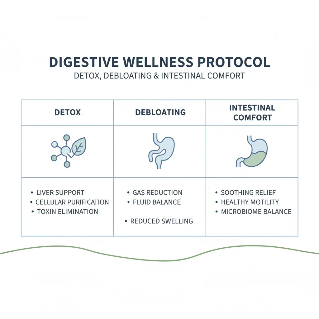 Belly Flush is a specialized formula focused on: cleansing, regulating, and comforting the digestive tract. The combination of its 11 active ingredients ensures a complete detoxification that directly reflects in reduced bloating and overall well-being.
